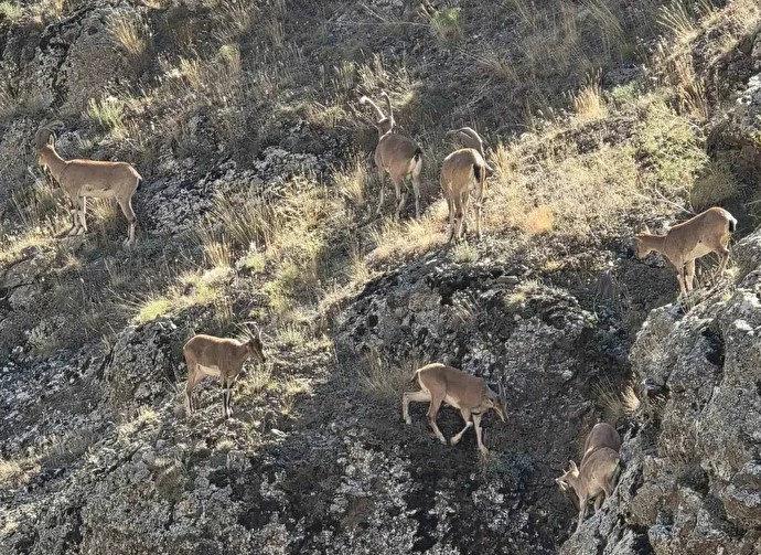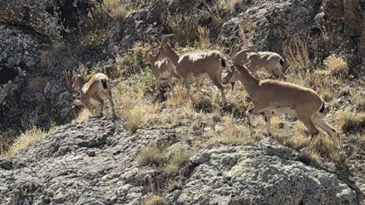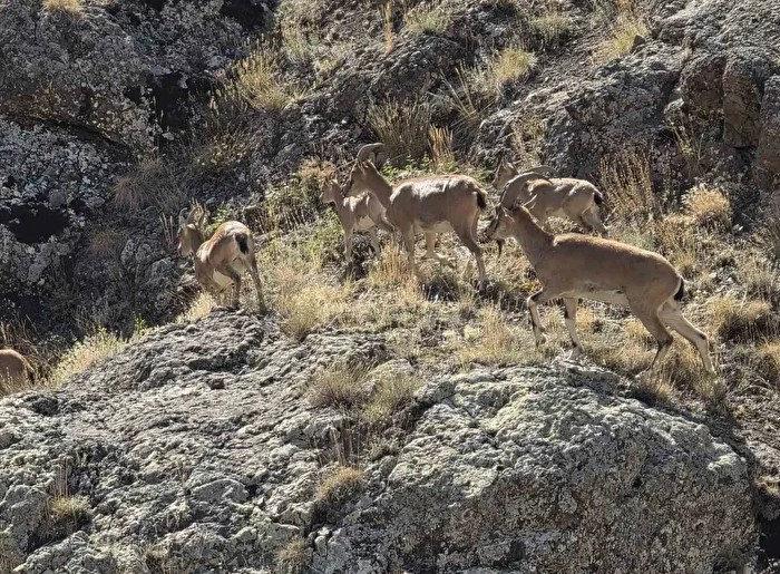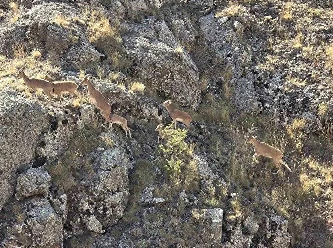 Halk arasında “yaban keçisi” olarak adlandırılan ve nesli tükenme tehlikesi altında olan dağ keçileri, Bayburt’ta Vauk Dağı civarlarında sürü halinde görüntülendi.