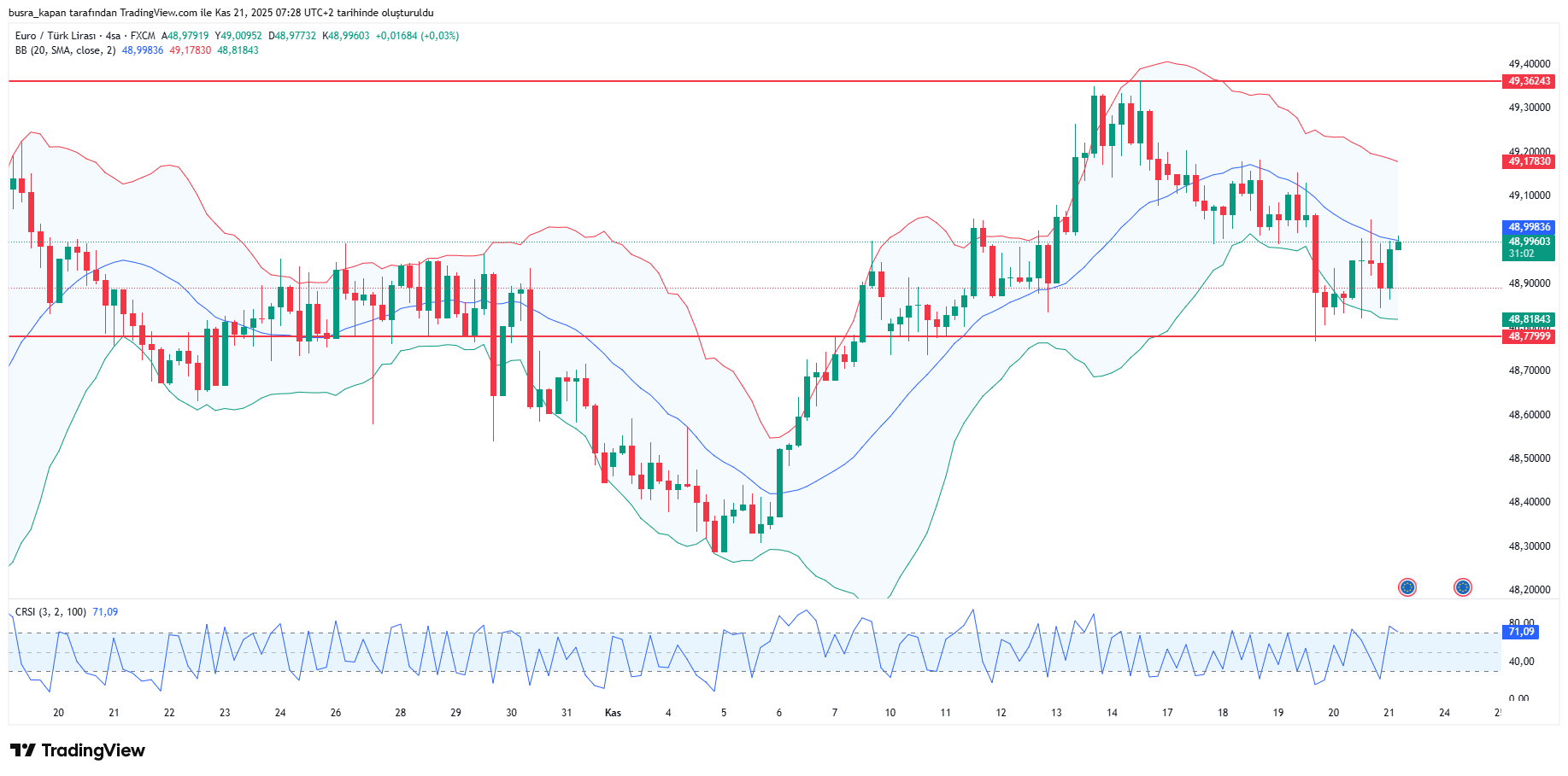 Euro/TL yeni güne yukarı yönlü hareketlilikle başladı. Sabah seansında 08.27’de 48,99 seviyesinde bulunuyor.
