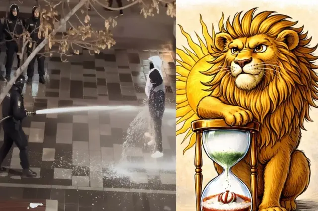 Üçüncü paylaşımda ise protestocuların Ayetullah Ali Hameney ve İran Devrim Muhafızları Ordusu liderlerini bir odada sakladığı karikatür paylaşıldı. “İsrail için belirlenen yıkım takvimi şimdi onlar için geçerli” ifadeleri kullanıldı.