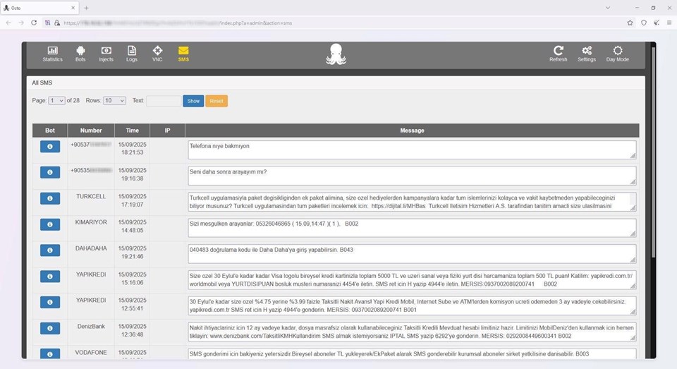 Operasyon sırasında, siber suç örgütünün mobil telefonlara yüklediği zararlı yazılımları yönetmek amacıyla kullandığı özel kontrol paneli de ele geçirildi. Ele Geçirilen Kontrol Paneli